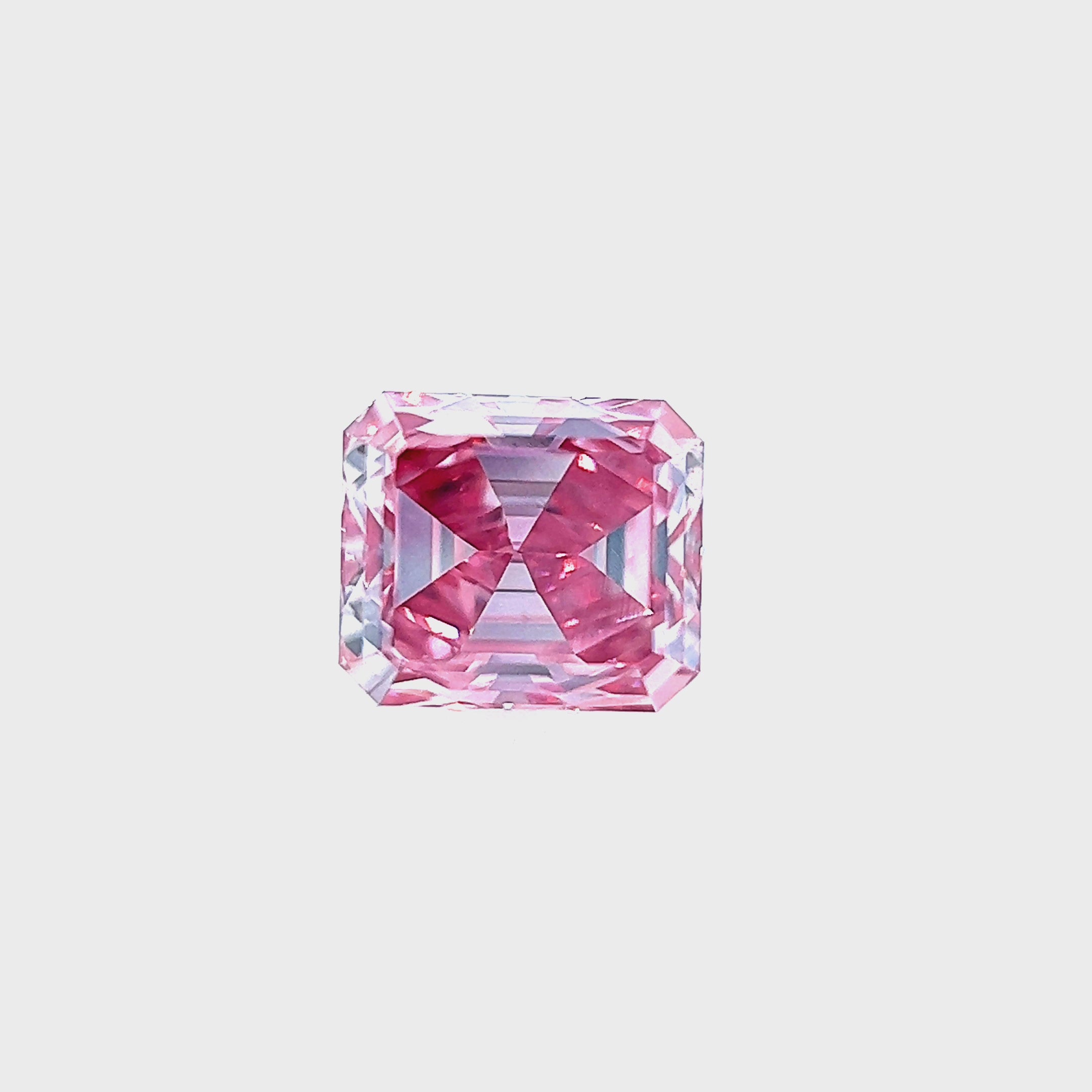 Weighing 0.32 Carats (practically at the 1/3 Carat mark) with completely eye clean SI1 Clarity, it has phenomenal fuchsia colour officially graded as Fancy Vivid Purplish Pink by GIA all together in a premium Emerald shape.