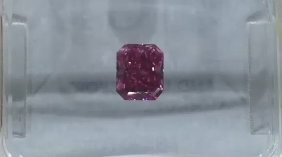 Weighing 0.50 Carats (exactly at the 1/2 Carat mark) a key threshold for investment with completely eye-clean SI1 Clarity (arguably VS2). A Mixed-Radiant shape with top make, this remarkable colour a electric fuchsia , GIA graded as Fancy Vivid Pinkish Purple.