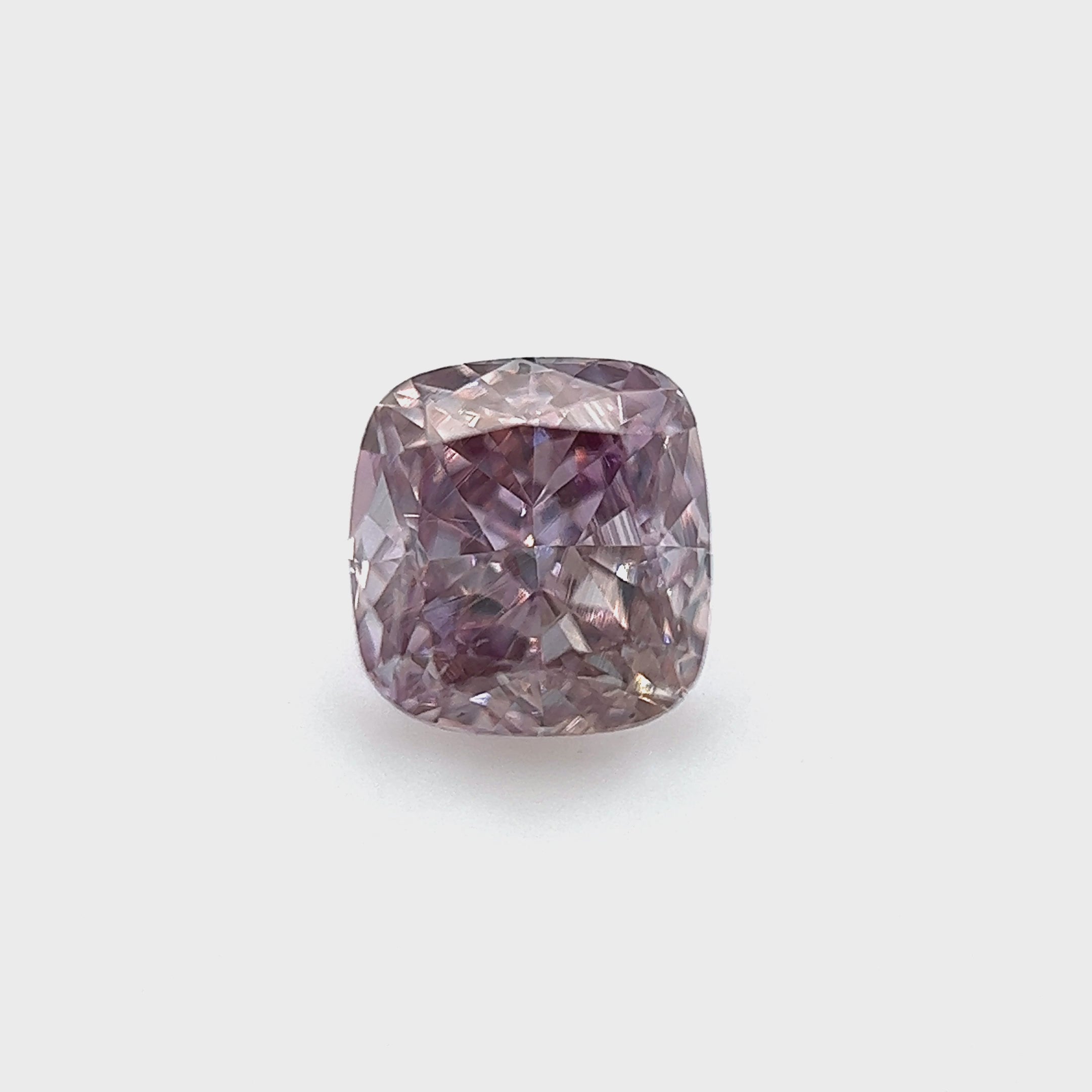 GIA graded as Fancy Purplish Pink, the stone weighs exactly 0.50 Carats with very impressive VS2 Clarity, all in a highly sought after cushion cut shape.